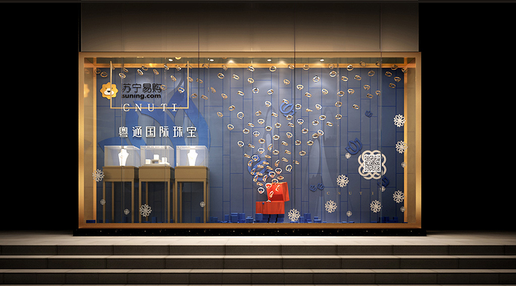 去苏宁易购云店与粤通国际珠宝橱窗合影是一种时尚