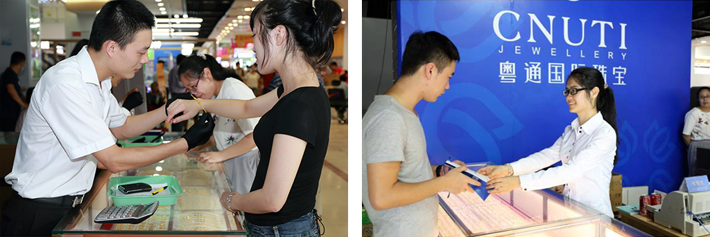 “我们用最诚挚的心服务客户,我们用最专业的水准给客户带来最便捷的享受”,怀揣着这样的信念,粤通国际珠宝2015年7月25日正式进驻苏宁易购云店,开启第一家珠宝体验店!让客户享受优惠价格和便捷购物的同时,弥补了电商购物由于不能实体体验而带来的不足,粤通国际珠宝用最优质的品质和服务,为客户创造一个安心购买、开心体验的购物环境。